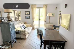 Au Cap d'Antibes, sur la mythique plage de la Garoupe, 3 pièces donnant sur terrasse de 27 m² au 1er étage sur deux. Vue mer latérale. Cuisine équipée, 2 salles de douches,2 WC.
